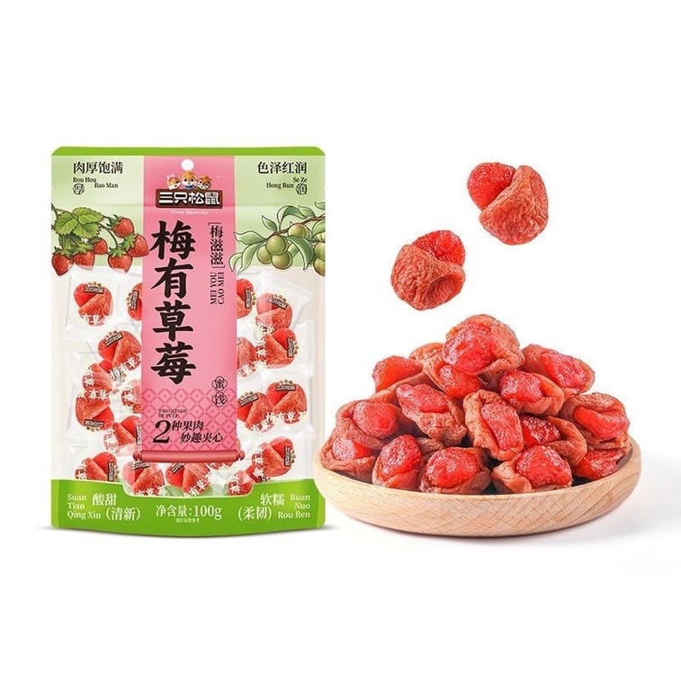 【中国直送】三リス梅&イチゴドライフルーツジャム、砂糖漬けプラム、子供用スナック、甘酸っぱいおやつ、お正月ギフト、100g*1、種なし、ライチ風味