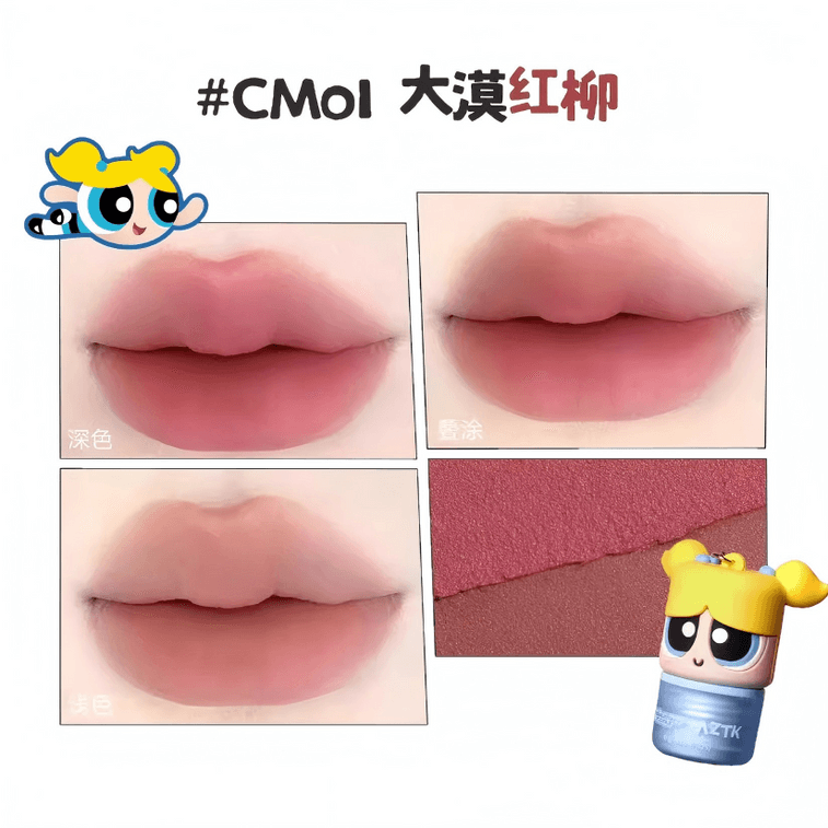 【中国直送】AZTK【パワーパフガールズコラボ】トラベリングデュアルトーンソフトマットマルチユースクレイマスク CM01 デザートレッドウィローローズジュジュブペースト/クリーミーヘーゼルナッツ、リップ&チーク兼用、軽量、ロングラスティングカラー、色移りしない、マット仕上げ、2.5g x 2 | Yami
