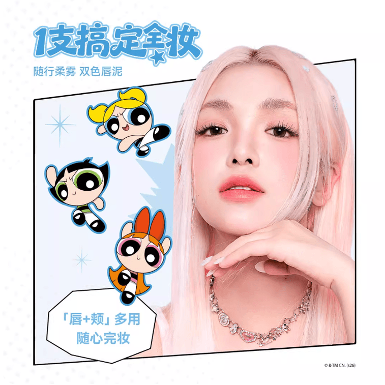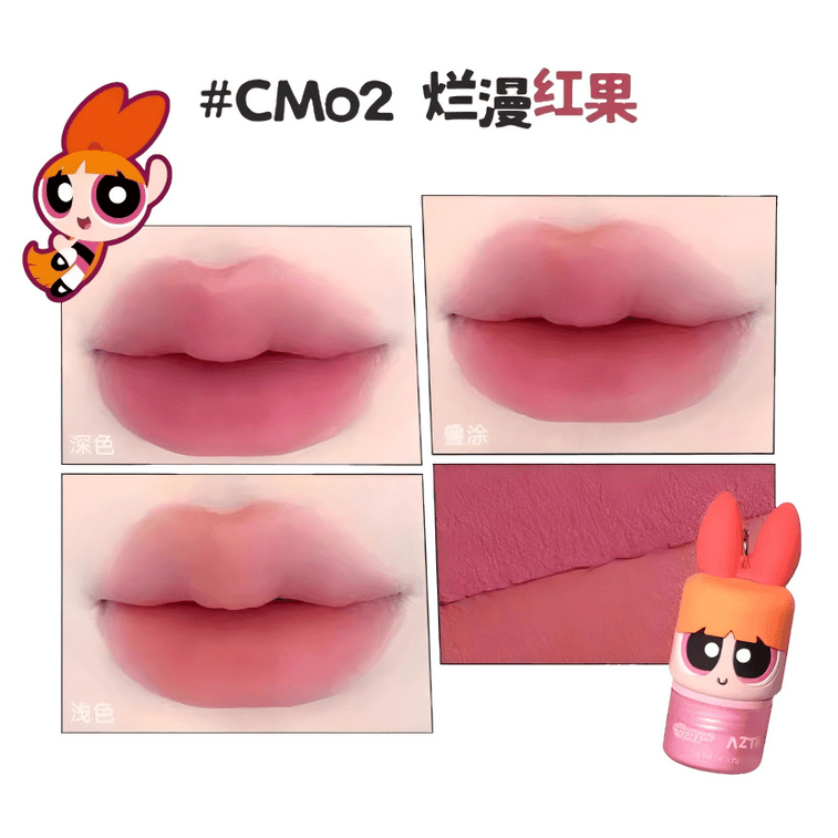 【中国直送】AZTK【パワーパフガールズコラボ】トラベリングデュアルトーンソフトマットマルチユースクレイマスク CM02 ロマンティックレッドフルーツタロイモグアバ/アップルウォータリーレッド、リップ&チーク兼用、軽量、ロングラスティングカラー、色移りしない、マット仕上げ、2.5g x 2 | Yami