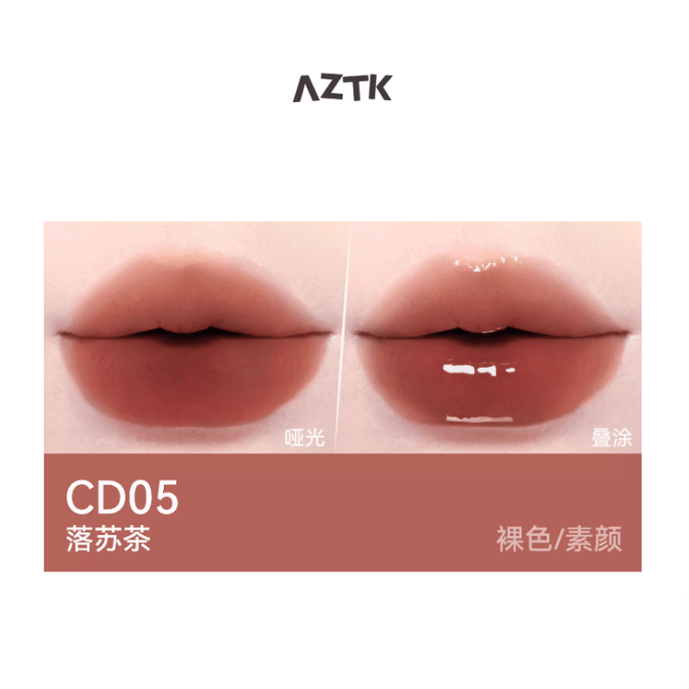 【中国直送】AZTK ダブルエンド リップグロス マットリップスティック&ミラーリップグロス 二重メイク効果 色移り防止 CD05 フォーリングティー ブライトニング 赤みブラウン 1.7g + 1.7ml 単品