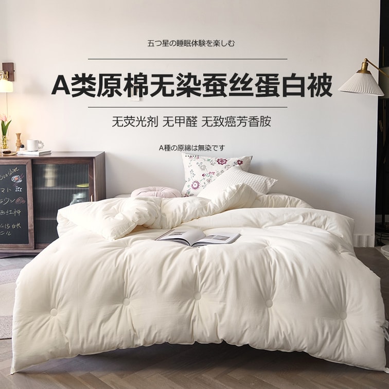 【中国直送】Baiyi 生綿シルクキルト カテゴリーA 母子グレード 無染色シルクプロテインキルト ツイン 150x200cm 1.25kg サマーキルト