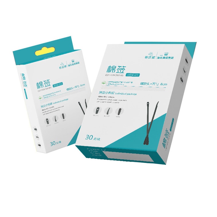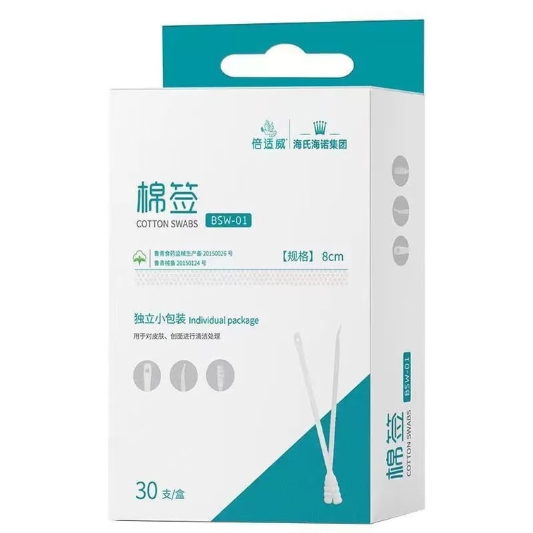 Haishen ニキビ洗浄スパイラル綿棒 (30 本、個別包装)、医療グレードの吸収綿、糸くずの出ない綿。