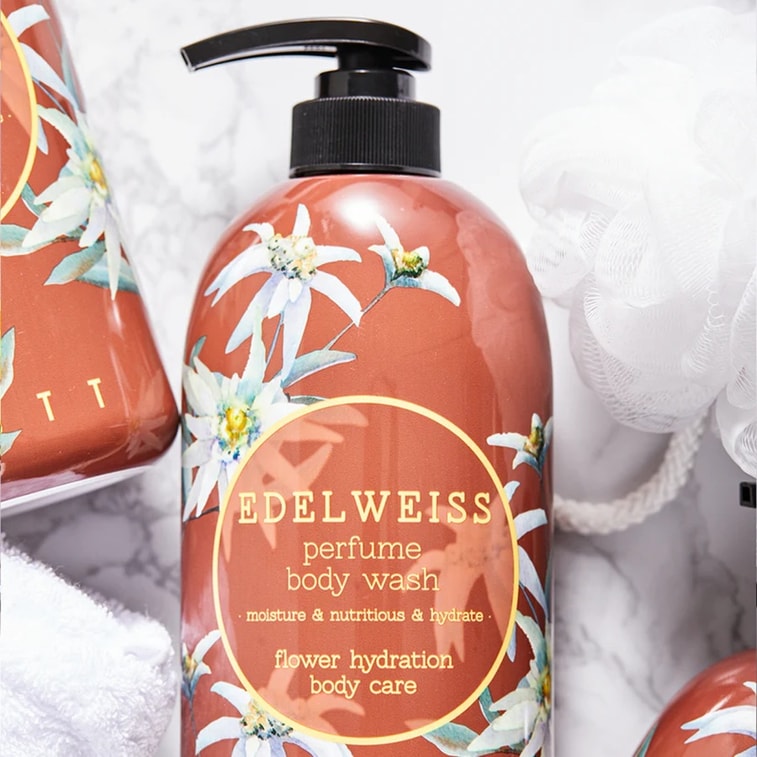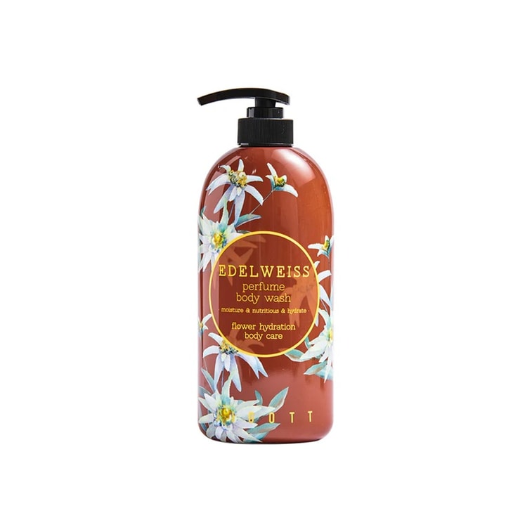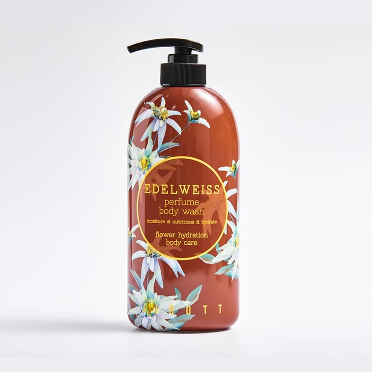 韓国製 ジゴテ エーデルワイス シャワージェル 750ml: 肌を優しく洗い上げ、フレッシュで清潔なフローラルの香りを残します。