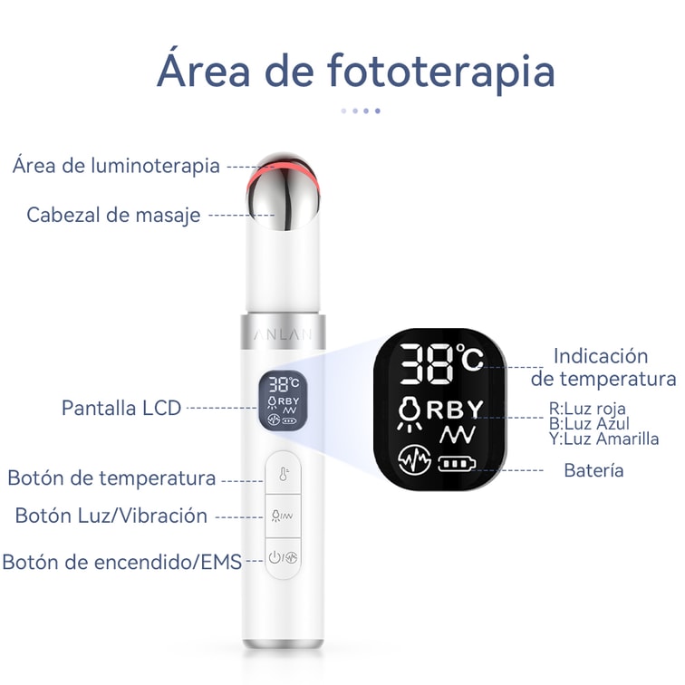 Anlan LM-2201 3色ライトアイマッサージャー(米国在庫) - マイクロカレントアイマッサージャー(くまやしわの軽減、リフトアップ、ハリアップ)、ポータブル充電式モデル、ホワイト(1個)