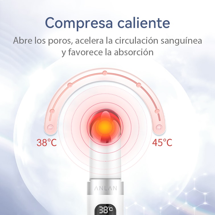 4. [アイクリームの吸収促進、ミリア(稗粒腫)の軽減] 温湿布+振動+イオンが毛穴を開き、細胞透過性を高め、アイクリームの分子を表面に残さず、基底層まで届けることで、より深く浸透します。これにより、毛穴を詰まらせ、ミリア(稗粒腫)の原因となる老廃物や表面へのアイクリームの蓄積を防ぎます。