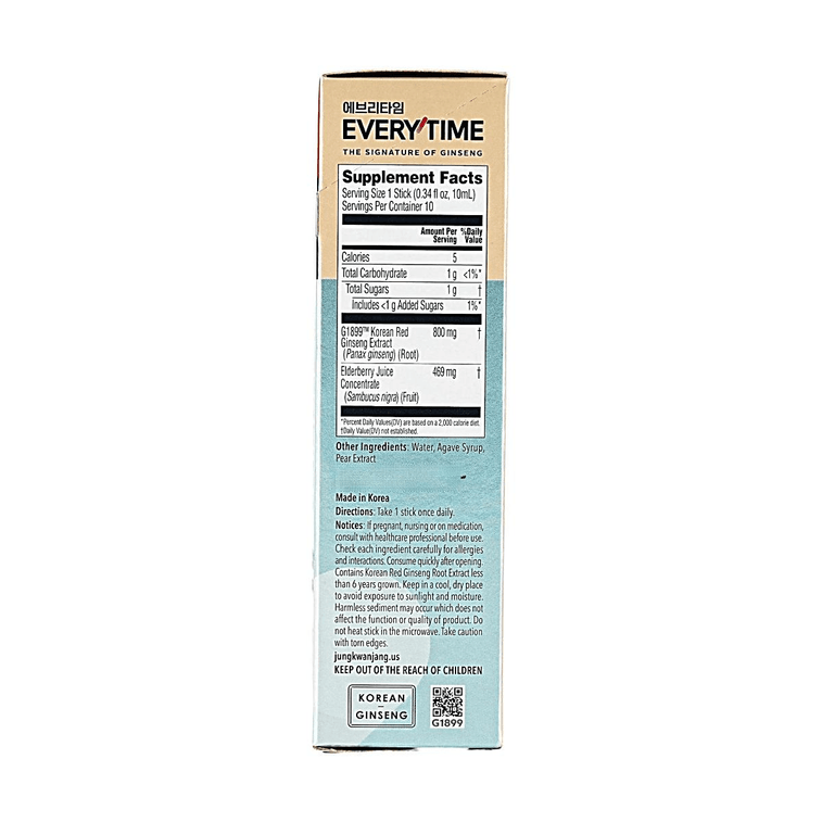 ["この製品は、厳選された6年ものの韓国産紅参(チョンクァンジャン産)を特徴としており、主要な活性成分であるジンセノサイドが豊富に含まれ、科学的に体の免疫防御を強化します。","、革新的なヨーロッパ産エルダーベリーエキスも含まれており、抗酸化物質と相乗的に作用してフリーラジカルと戦い、健康を多角的に保護します。純粋な天然エキスは、カフェインなしで疲労を和らげ、精神的な明晰さと集中力を維持して、豊富なエネルギーを提供します","の特徴である携帯しやすいロングストリップパッケージで提供され、抽出せずにすぐに飲めるため、仕事とアウトドア活動の両方のニーズに完璧に対応します。厳格な品質管理と自然で無添加の哲学を遵守し、滑らかで純粋な味を誇り、高級な栄養をシンプルかつ安心にします。紅参とエルダーベリーの強力な組み合わせは、ストレスを抱えている人に特化した効果を提供し、総合的に健康の障壁を構築し、活力を高めます。"]["Premium 6-year Korean Red Ginseng rich in Ginsenosides to scientifically boost immune defense.","Innovative European Elderberry extract provides multi-dimensional antioxidant support for overall health.","Caffeine-free natural energy to relieve fatigue and maintain mental focus and alertness.","Portable Everytime stick packs for convenient on-the-go consumption, no preparation required.","Strict quality standards and additive-free formula ensure a smooth, pure, and safe wellness experience.","Powerful Ginseng and Elderberry blend targets stress to strengthen your body's natural vitality."]