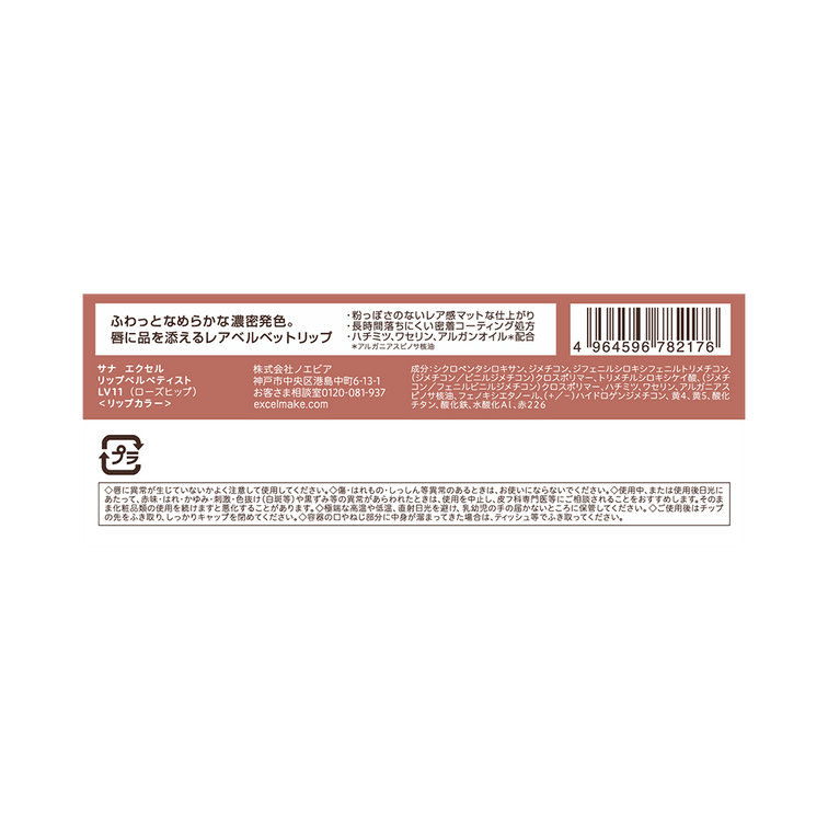 日本エクセル ミストチューブ ベルベットリップグレーズ LV11 ラブフルーツローズ 2.5g