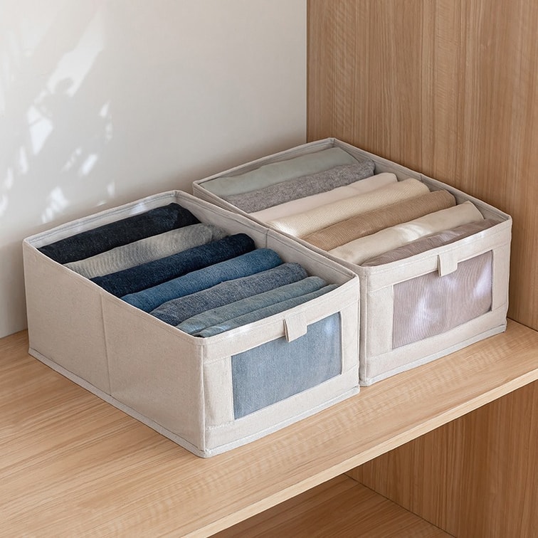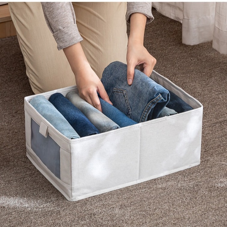 FaSoLa Life ファブリック収納ボックス グレー コットン&リネン ラージサイズ パンツ&洋服収納 アーティファクト ワードローブ 洋服収納ボックス