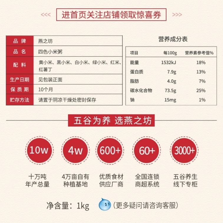 【中国直送】燕之坊四色雑穀粥 150g*1袋