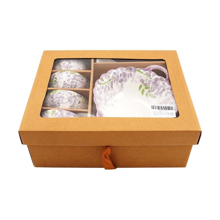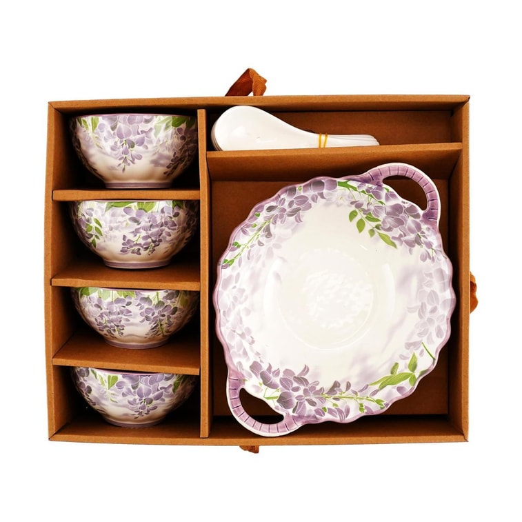 Golden Lion 咲き誇る花々 9点食器セット 牛革フェルトボックス包装 バイオレット | Yami
