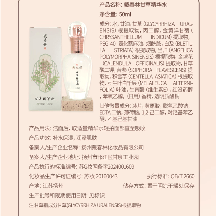 Four Seasons Essence Water Licorice Essence Water 50ml Hydrating Moisturizing Serum Licorice Plant Extract Skincare Repairs Sensitive Skin Reduces Redness