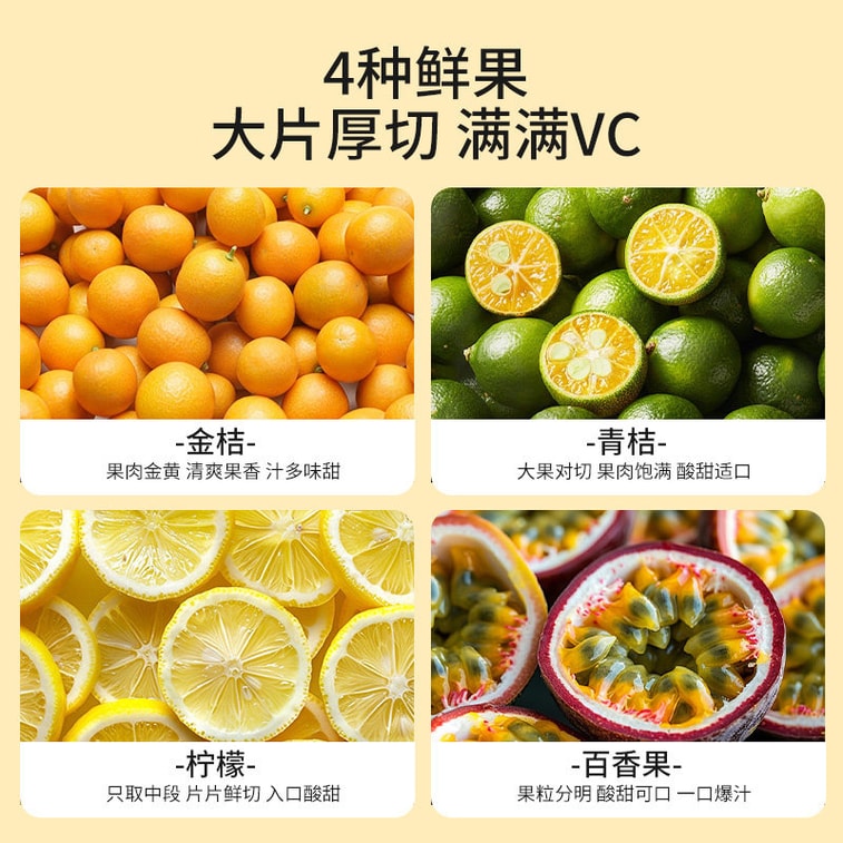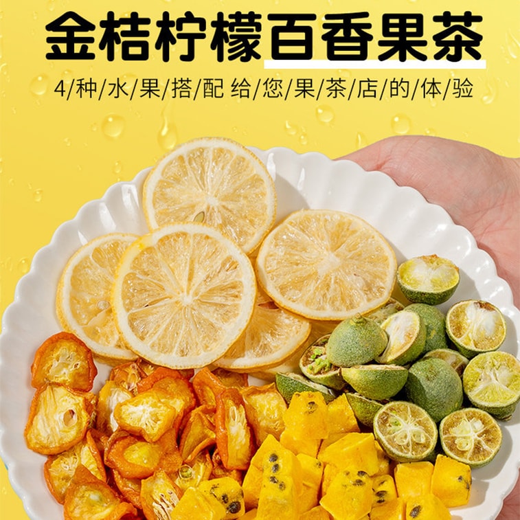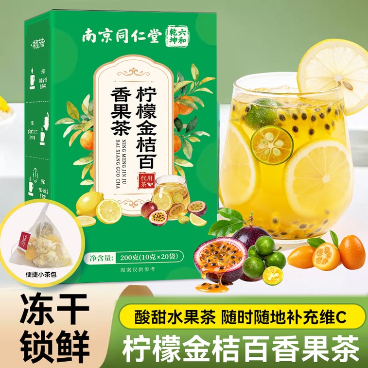 【中国直送】南京同仁堂 フリーズドライみかん・キンカン・レモン・パッションフルーツティー 10g×20袋(計200g) フルーツティー。4種類の新鮮なフルーツをカットしたフリーズドライフルーツは、ビタミンCがたっぷり。個包装の三角形のティーバッグです。【フルーツティーの中身が見える、一口飲むごとに豊かなフルーツの風味が広がります】