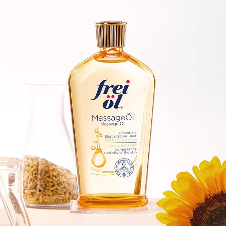 マッサージオイル、ストレッチマーク防止ボディオイル、4.41液量オンス - 妊娠中でも安全 | しわを防ぎ、かゆみを和らげます | 速吸収