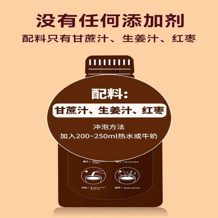 【中国直送】雲陰烏足オリジナル生姜ナツメ茶 黒砂糖と生姜入り 子宮・体・肌を温める生理健康茶(25ml×6袋)