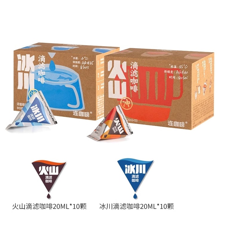 【中国直送】リアンコーヒー グレイシャー ボルケーノ ドリップコーヒー 水出しコーヒー液 アメリカンブラックコーヒー濃縮液 2箱(計20本)