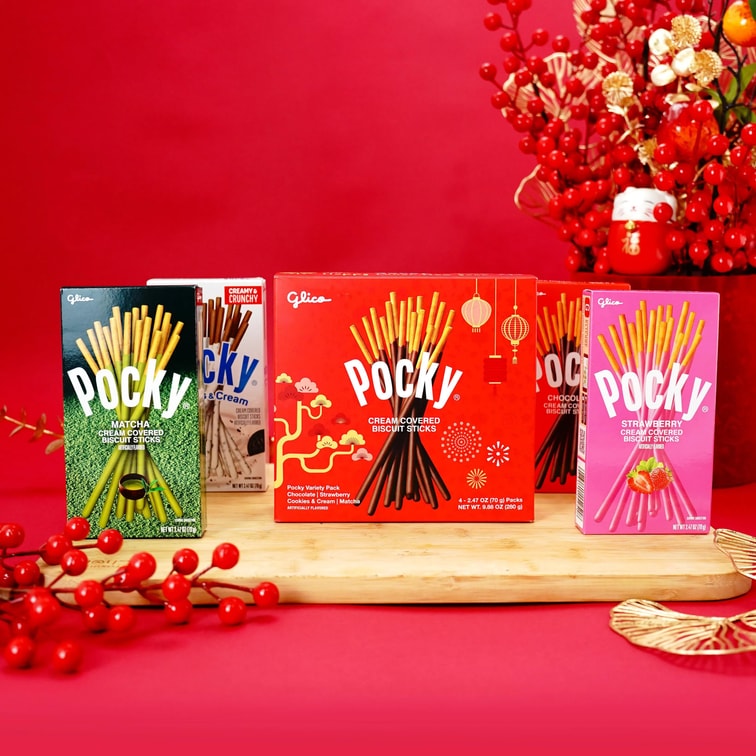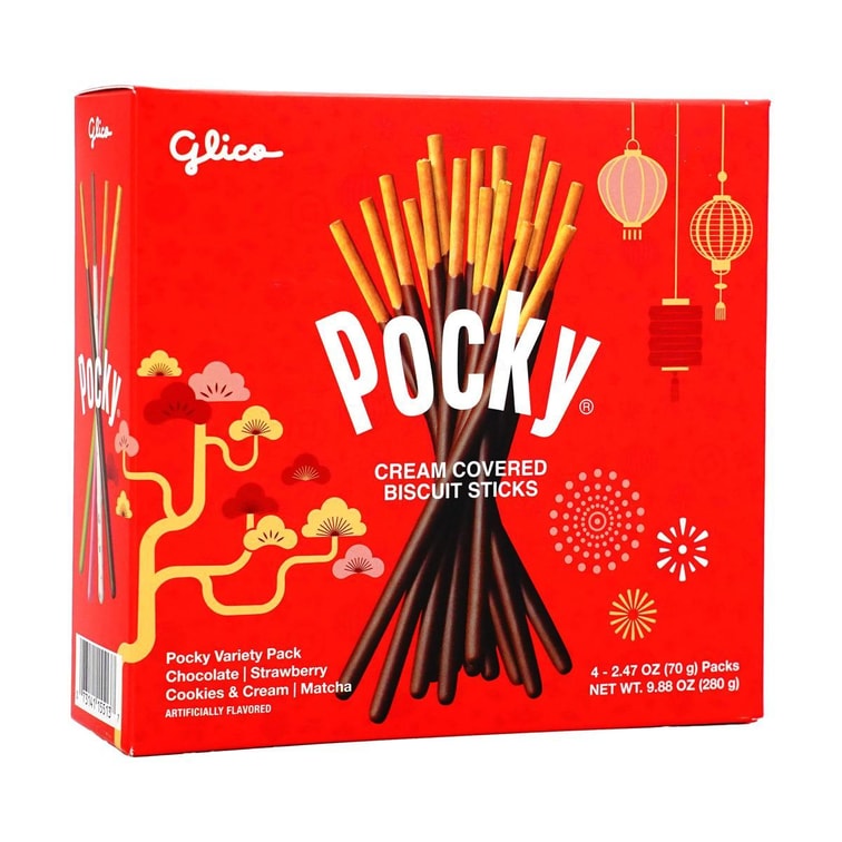 ポッキー 旧正月ギフトボックス クリームビスケットスティック バラエティパック 9.88オンス [チョコレート+ストロベリー+クッキー+抹茶]
