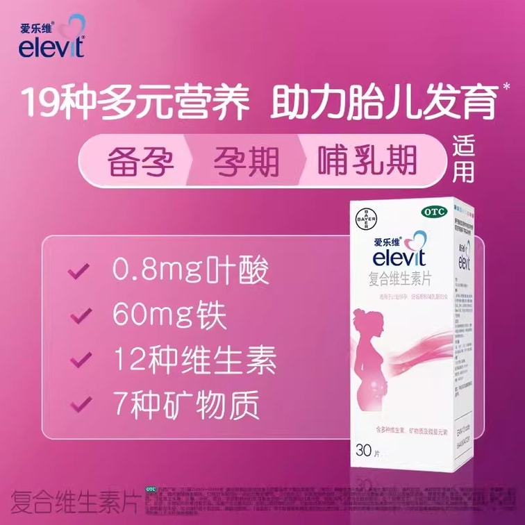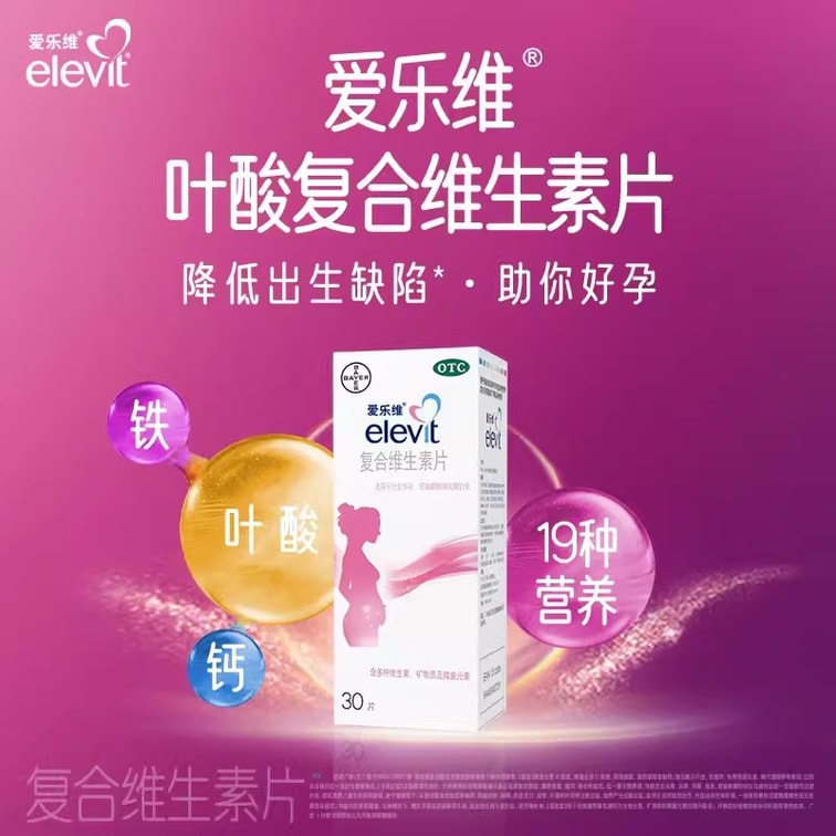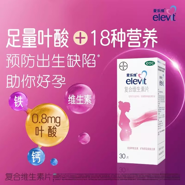 Bayer Elavil Multivitamin Pills Folic Acid Tablets Pregnancy Preparation 30 Tablets/Box