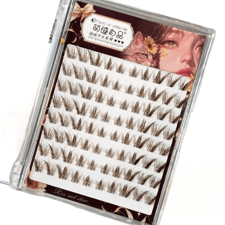【中国直送】Mengjie Shangpin グルーフリー ダークブラウン ダブルテール フォックス 13mm つけまつげ (90本*1箱)