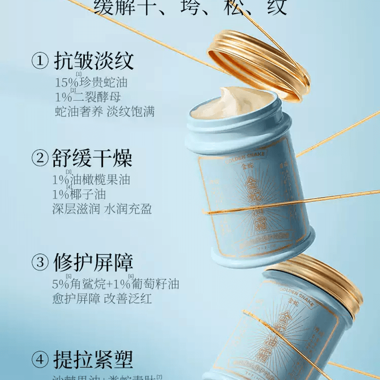 【中国直送】ゴールデンスネークオイルクリーム しわ対策 補修 保湿 キンモクセイの香りのスネークオイルクリーム 45g×1本