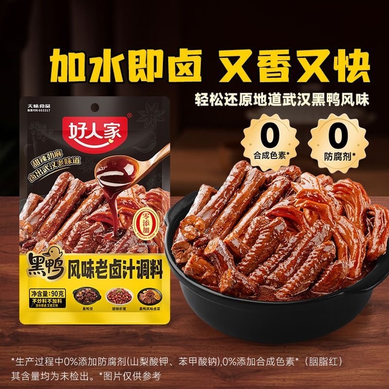 【中国直送】好人家黒鴨風味煮込みソース、1袋90g、甘辛、中国の人気煮込みダックブランド「周黒鴨」と同じ味。
