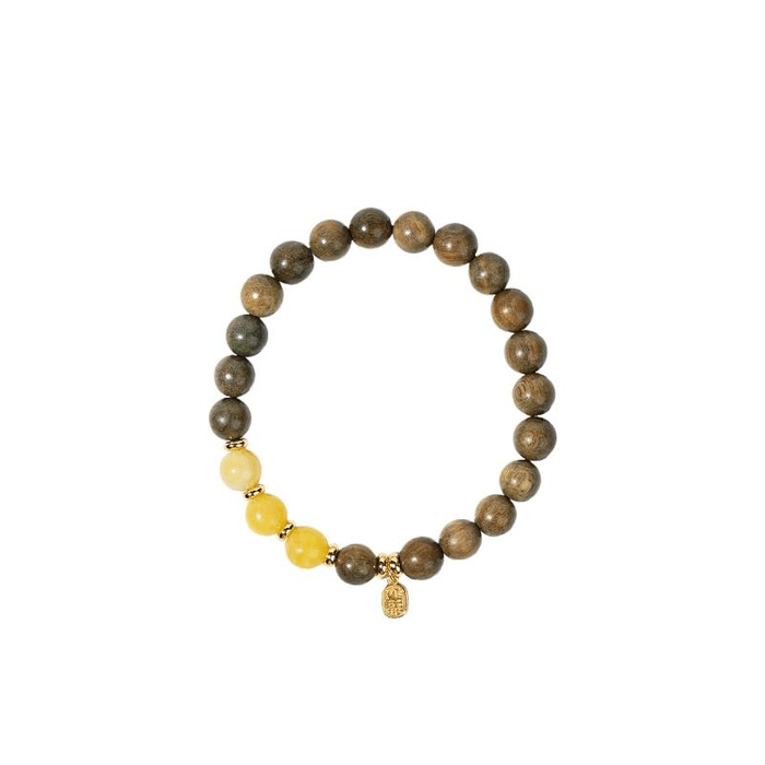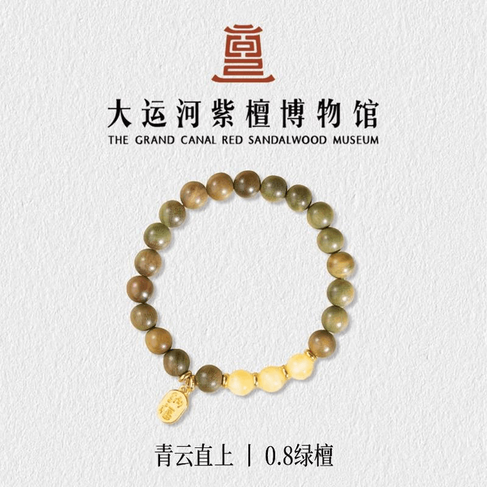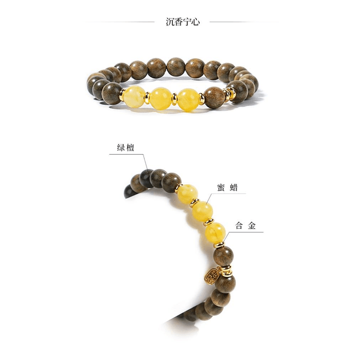 【中国直送】大運河紫檀博物館 - 緑白檀ブレスレット(0.8mm)+琥珀+合金木、男女兼用サイズ*1個