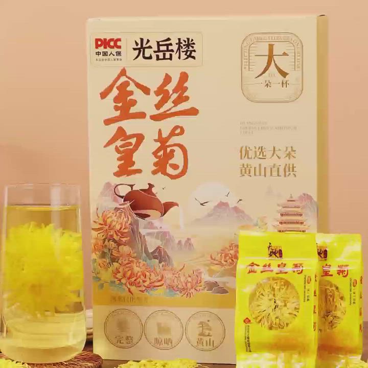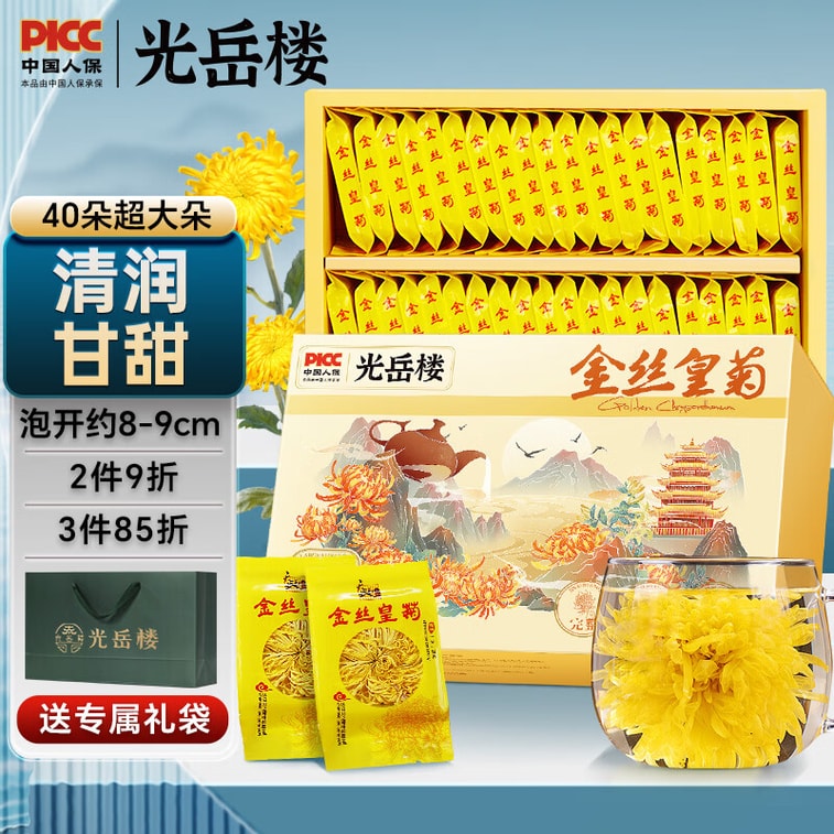【中国直送】光月楼 ゴールデンシルク菊 40本入り 大輪菊茶 黄山産 一輪一杯級 個包装 貢菊の胎 40袋 800g