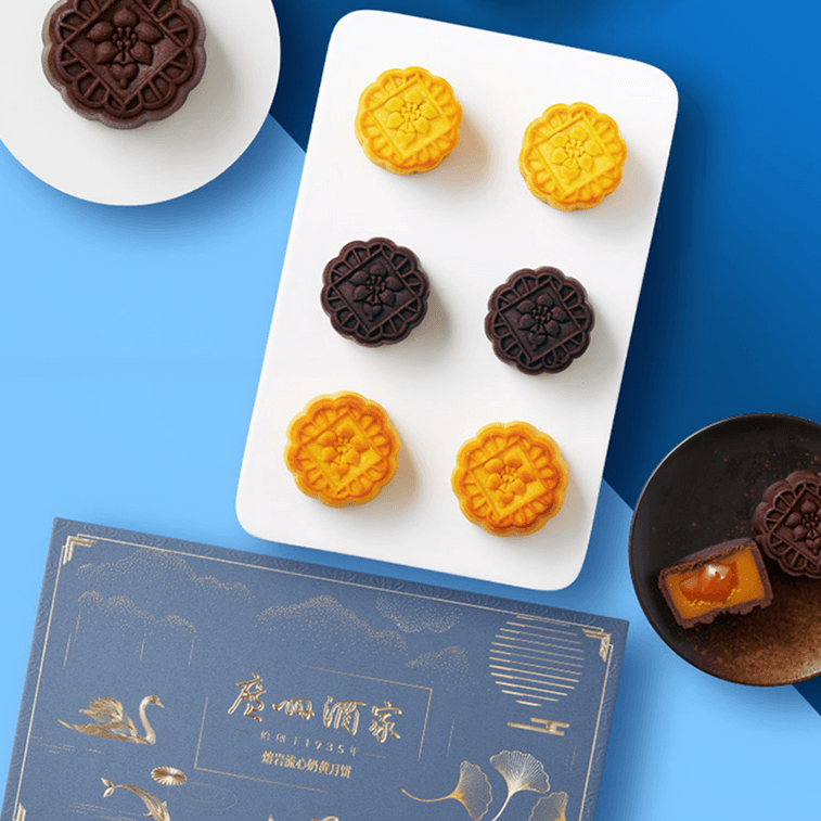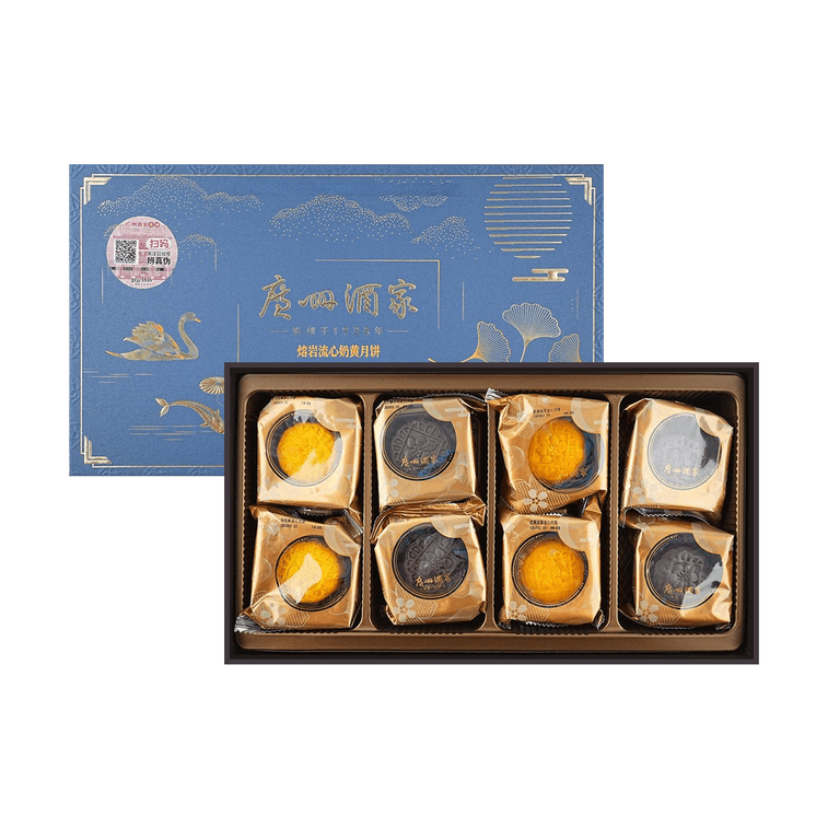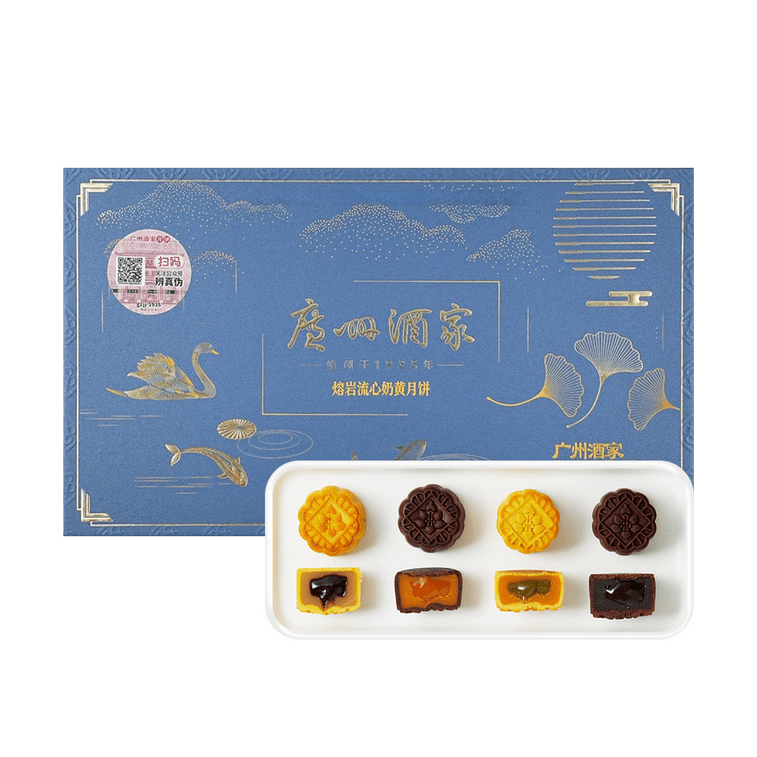 溶岩カスタード月餅ギフトボックス、ヘーゼルナッツチョコレート+チョコレートカスタード+カスタード抹茶+トフィー風味、8個入り、14.1オンス