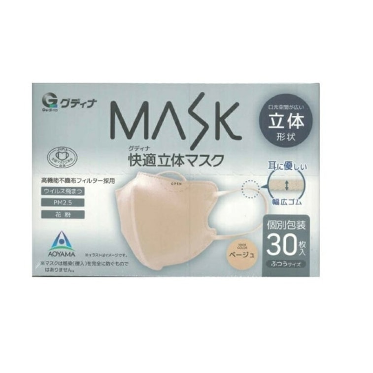 GUDINA 大人用3D快適マスク アプリコットイエロー レギュラーサイズ(30枚入り)