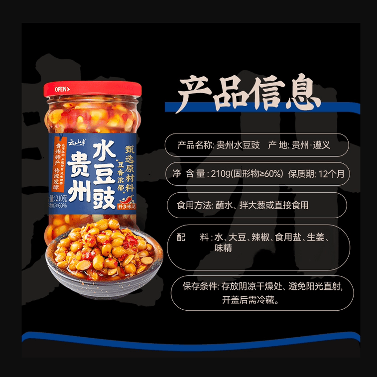 【中国直送】雲山板 貴州省発酵黒豆チリソース 無添加 そのまま食べられる 210g×1本 | Yami