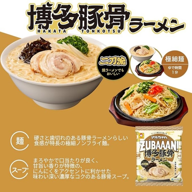 【日本直送】マルちゃん ズバァーン!博多豚骨ラーメン 極細麺 1袋