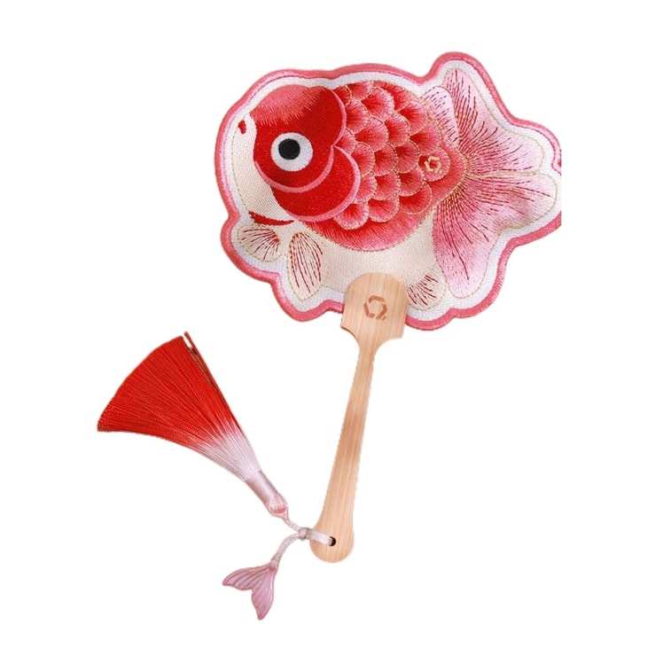 Qian Li Hand-Shaped Embroidery Fan Decorative Portable Cultural And Creative Small Fan - Koi -Fish Style 1 Piec