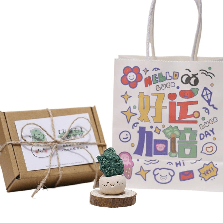 【中国からの直送】不明な他のブランド 純手作りの小さなかわいい天然水晶原石 マラカイト 幸せと幸福 3.5cm