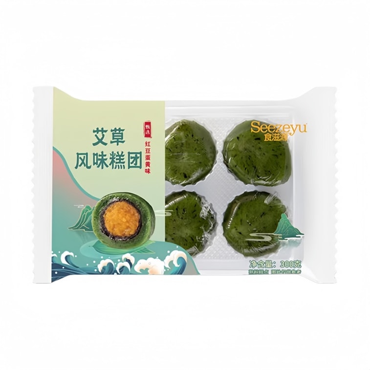 【中国直送】石子源 ヨモギ風味餅、小豆と卵黄風味、300g(6個入り)、江南地方の特産品、青団子(甘い餅)、もち米餅、清明節のおやつ | Yami