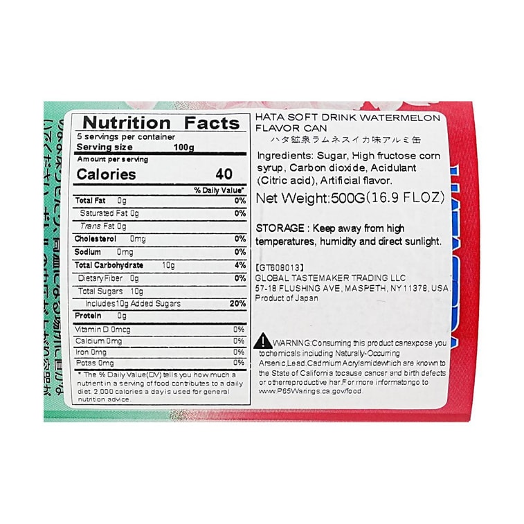 ハタソフトドリンク スイカ味ソーダ缶 16.9液量オンス
