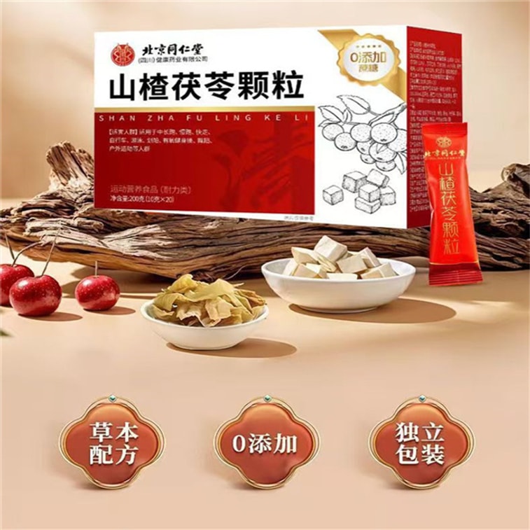 北京同仁堂サンザシとポリア顆粒、無糖、脾胃強壮、湿潤、気調節茶、食欲増進、健康維持茶、200g