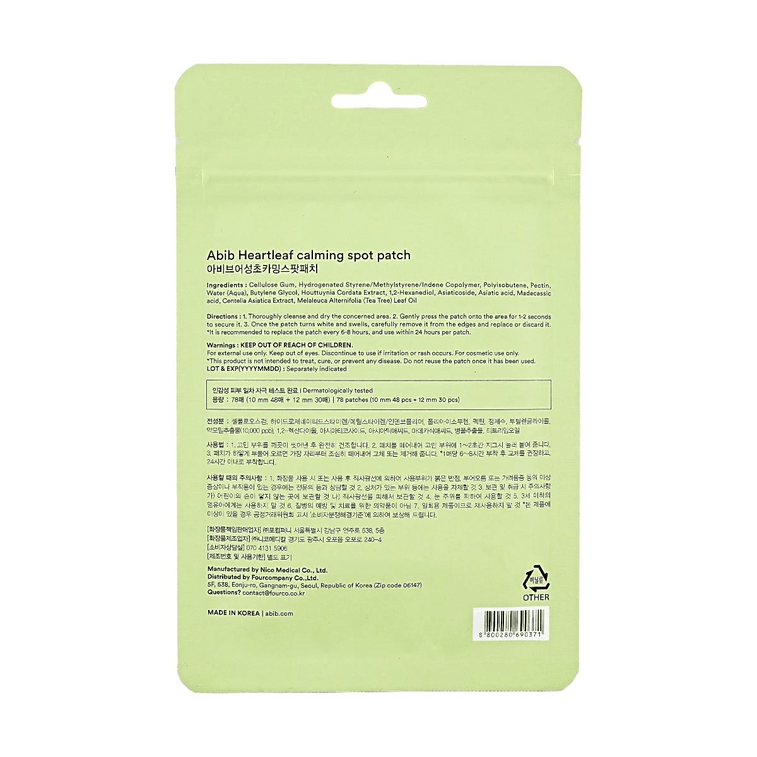 アビブ ハートリーフ カーミングスポットパッチ 78枚入り 防水ニキビパッチ