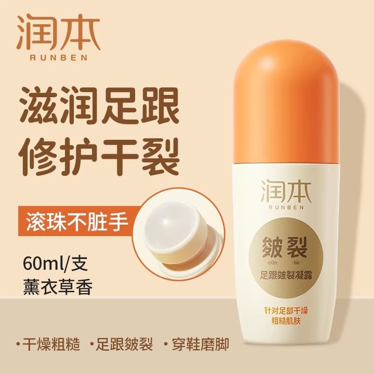 【中国直送】Runben かかとひび割れ補修クリーム 60ml [ラベンダーの香り] 秋冬 乾燥してひび割れたかかとを補修するクリーム 卵黄オイル配合 手足のひび割れ防止ロールオンひび割れクリーム