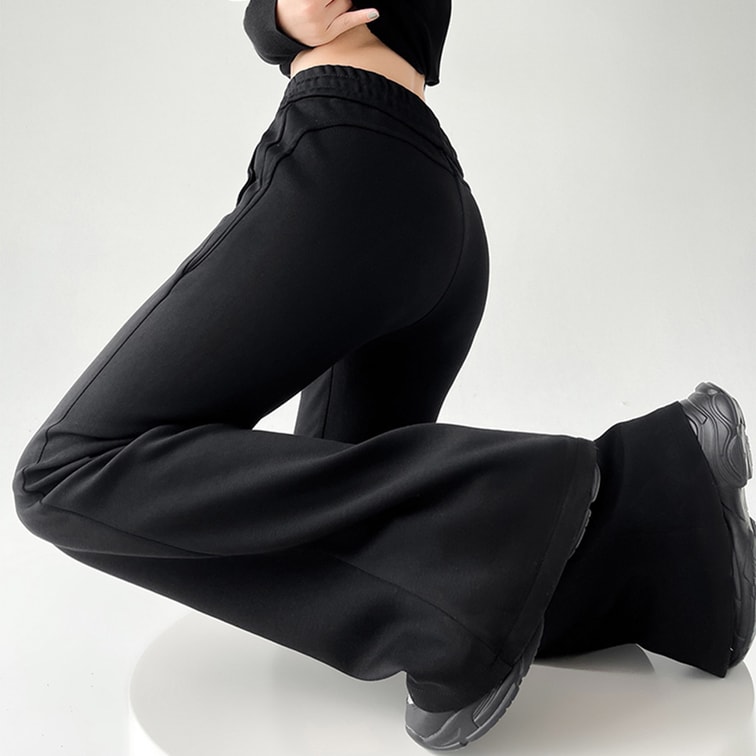 ハイウエスト痩身スポーツカジュアルスウェットパンツフロアレングスの馬蹄フレアパンツ