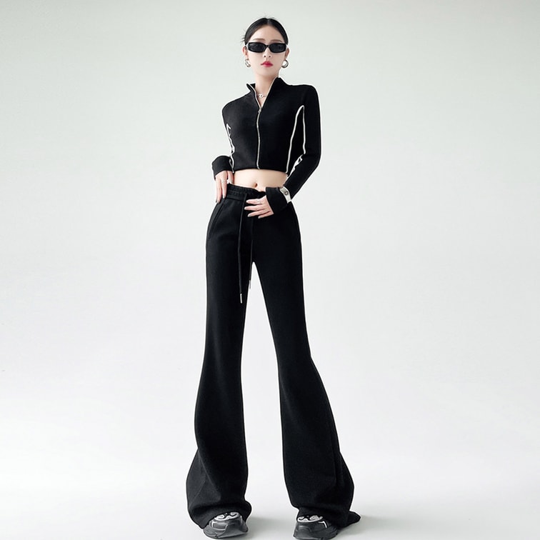【中国直送】HSPM ハイウエストスリムスポーツカジュアルフレアパンツ ブラック レギュラーM
