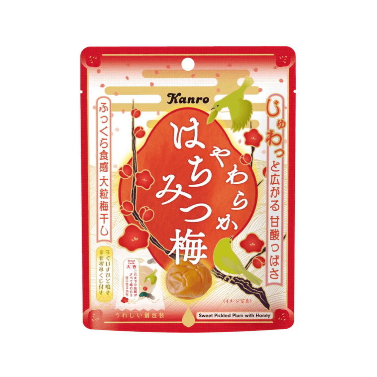 甘酸っぱい風味の、大きめにカットされた梅の漬物。蜂蜜を使用しているため、1歳未満の乳幼児には与えないでください。