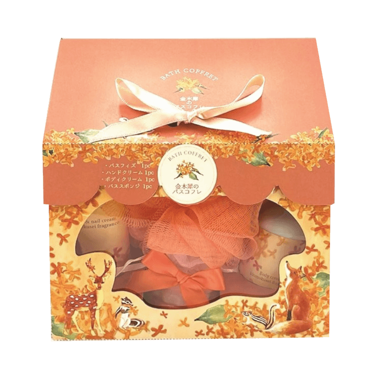 【日本直送】ほんやら堂 バスコファー キンモクセイの香りセット(ボディローション72g+ハンドクリーム30g+バスボム50g+泡立てネット1個)