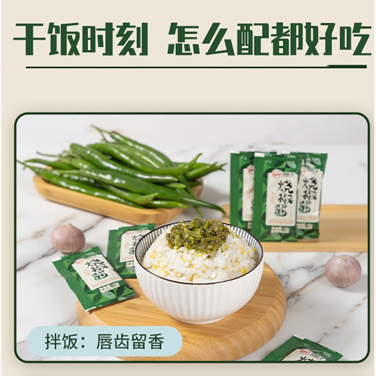 Chuancheng Charred Chili Sauce 15g*20 Packs. Sichuan Charred Green Chili & Garlic Sauce for Rice/Noodles