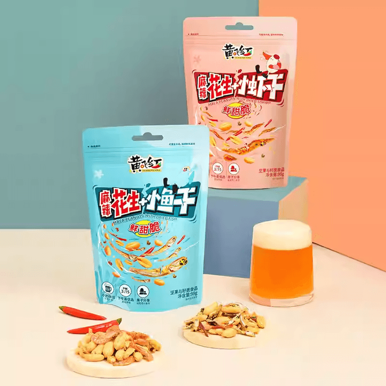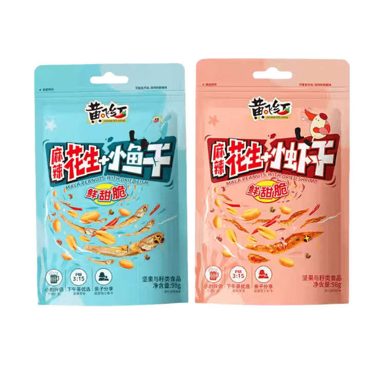 【中国直送】黄飛鴻 辛口干し魚、ピーナッツ、エビ 2種類 各98g(1パック)