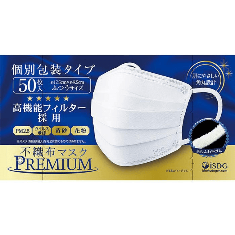 【日本直販】ISDG医療・食品グレードフェイスマスク 50枚入り レギュラー フラット 薄型 通気性 使い捨て 快適 大人と子供に最適。