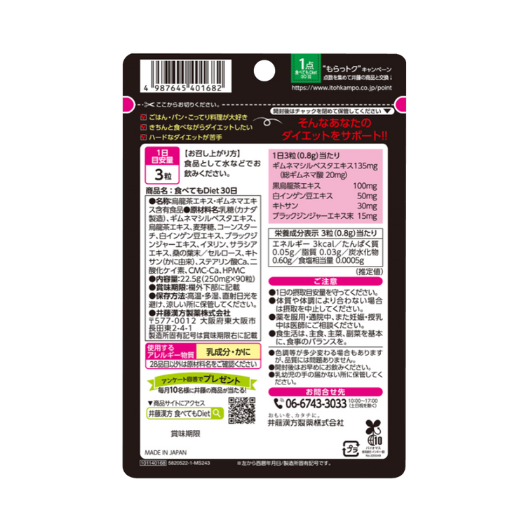 井藤漢方製薬 ダイエット黒烏龍茶エッセンス ボディシェイプ 温熱コントロール錠 30日分 40g