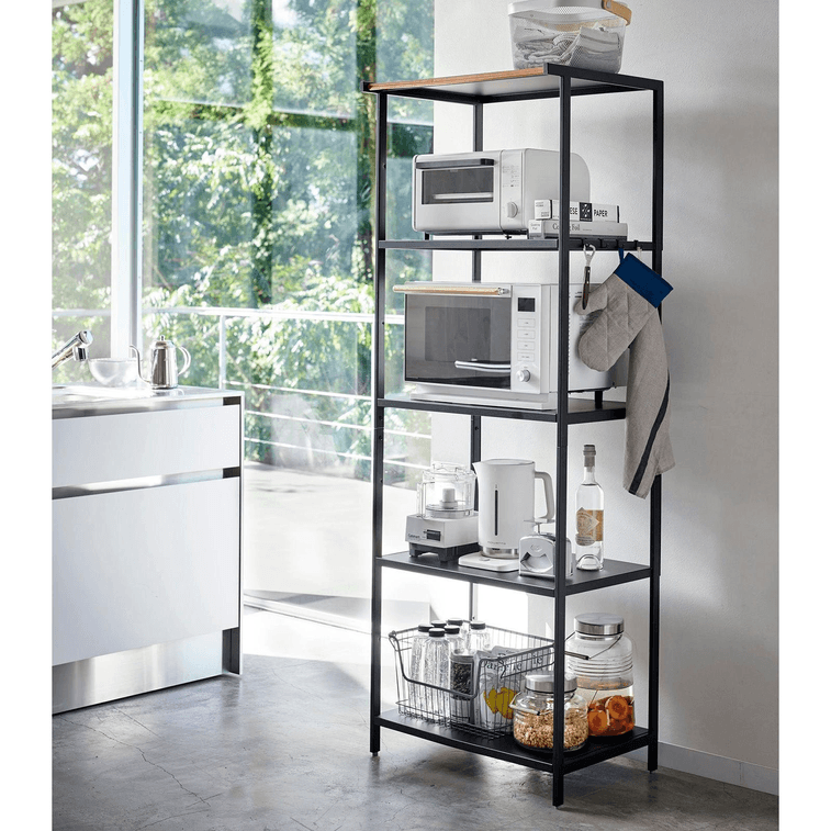何もない空間に収納スペースを作ろう!収納スペースが限られているキッチン、パントリー、ホームオフィス、趣味の部屋などに最適なソリューションです。オーブン、電子レンジ、ブレンダーなどの中型家電専用のスペースを確保できます。棚板の取り付けに便利な穴があけられています。サイズは画像をご覧ください。 35インチ:標準的なカウンタートップとほぼ同じ高さ35インチの快適な高さで、どんなに活用されていないスペースにも、あっという間にスタイリッシュな整理コーナーを演出できます。棚は3段付いています。 67インチ:最大限の柔軟性を実現するために、付属の 5 つの棚を 9 つの異なる場所に設置できます。 67インチ(冷蔵庫):下部の広いスペースにはミニ冷蔵庫やゴミ箱を置くこともできますが、用途は無限大。棚は3段付いています。