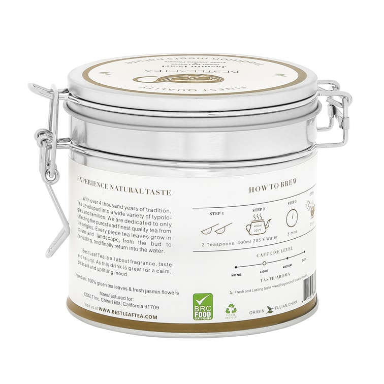 Our Jasmine Pearl Green Tea is made in the North part of Fujian province of China. They produce soft, downy buds that are picked in early spring to make green tea and are then hand-rolled into “pearls”. In order to bring the tastiest, fresh, and fragrant Jasmine Pearl Green Tea to our customers, BESTLEAFTEA makes all tea into a sealed bag and tea tins to protect the tea from light and air to keep the fresh taste. The key to Jasmine green tea is the green tea leaves. Compare to other jasmine pearl products in the market, our jasmine pearl product has very rich and good quality leaves to release a more sweet taste than bitterness. BESTLEAFTEA is also very strict to our jasmine pearl tea factory that they need to be certified by FDA and BRC, For Some of our products, we even ask both plant and factory get certified by USDA organic.
