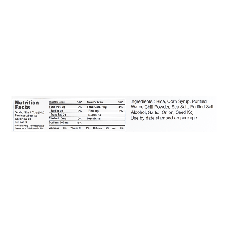 | 材料 | コショウ、コーンシロップ、食卓塩。 |