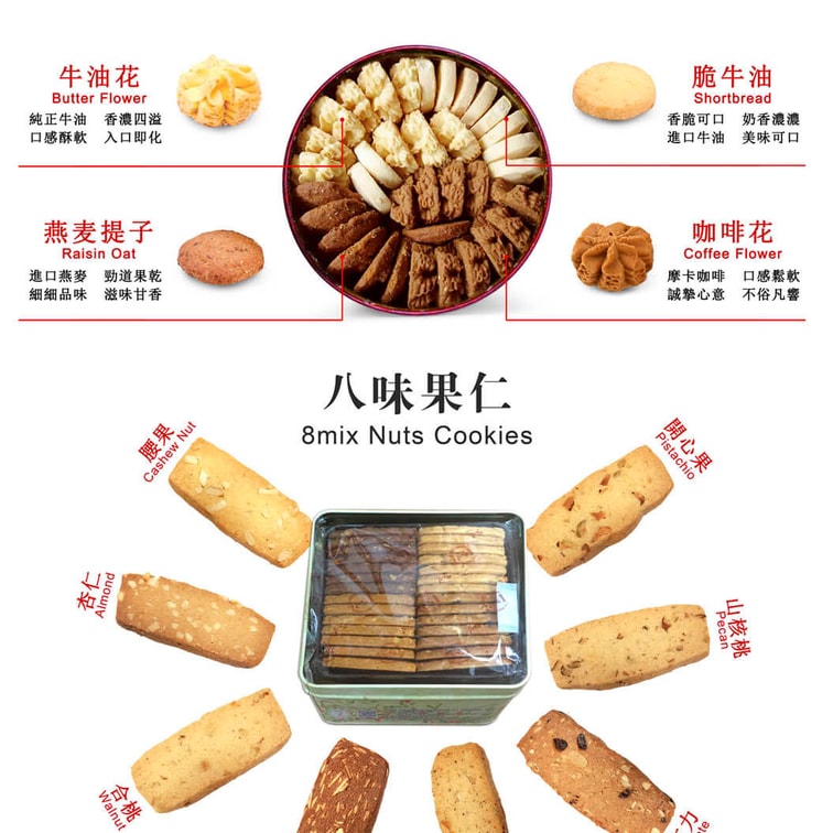 Premium Assorted Flavours Butter Cookies 8Mixs 460 g