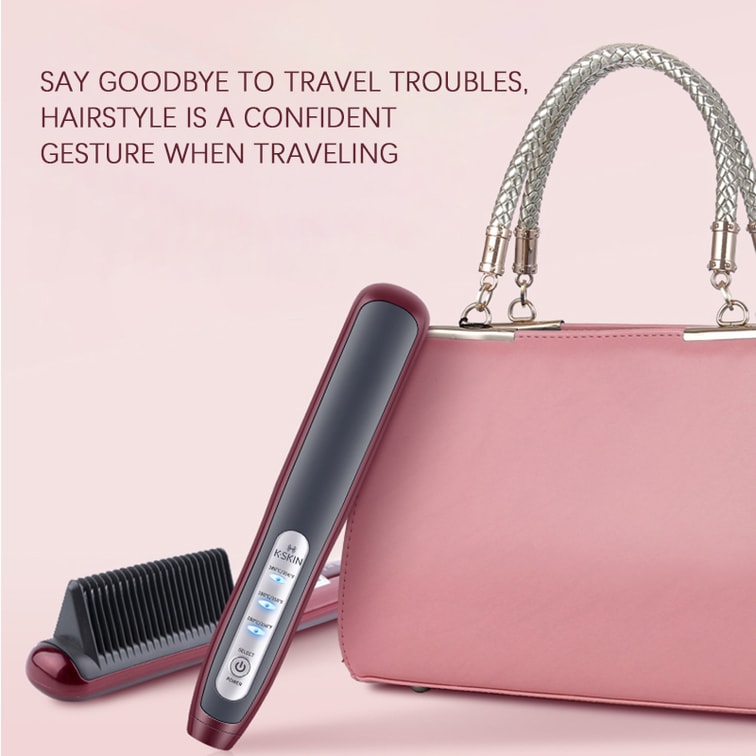 K·SKIN ゴールデンライス 両用ストレートヘアコームクリップ 家庭用ストレートヘアアイロン 髪を傷めない 小型ストレートクリップ KD388B レッド 1セット